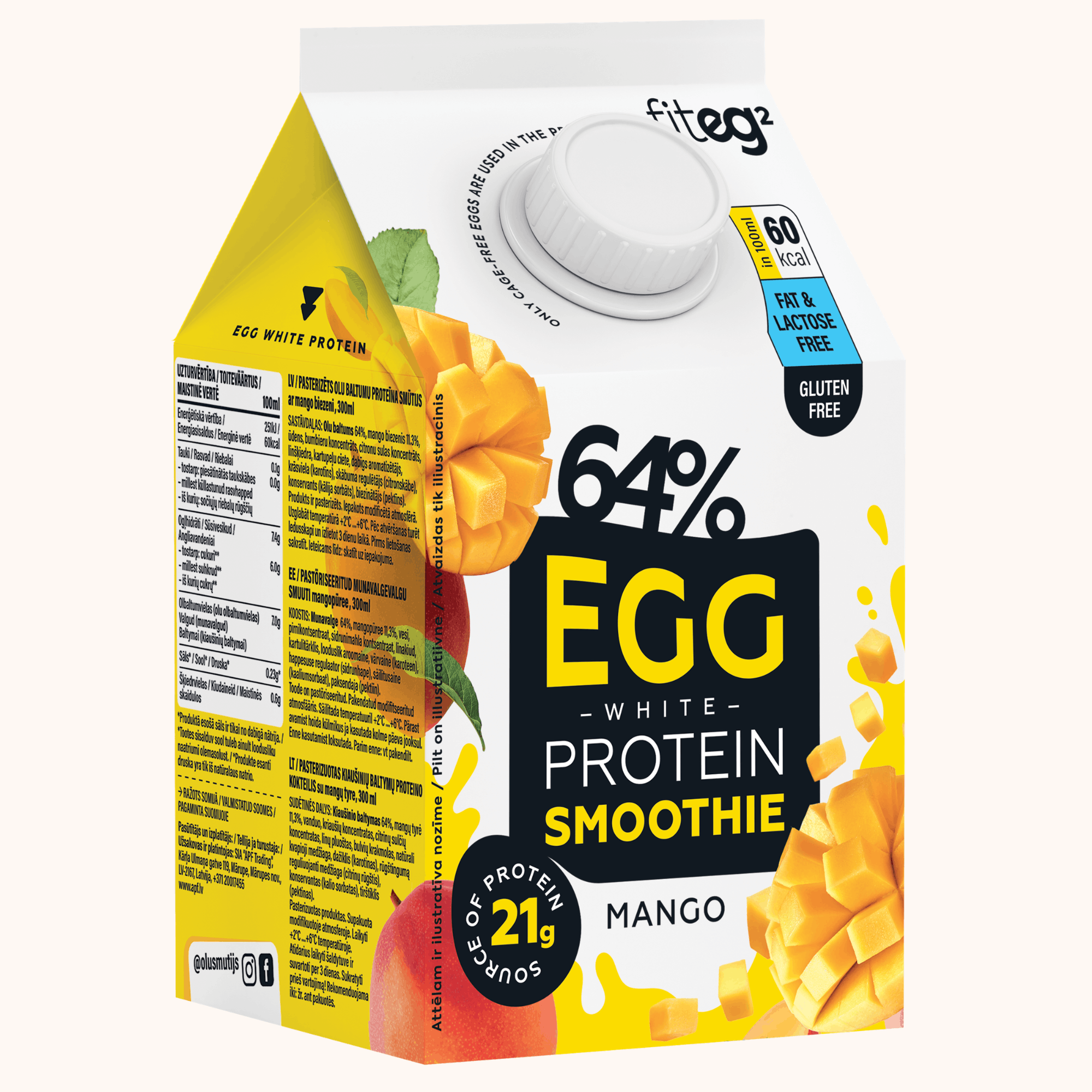 Fiteg² egg white smoothies are designed for convenience, quality and great taste. Enjoy high-quality protein in a ready-to-drink format with no preparation needed - just shake and enjoy anytime. Made with carefully selected ingredients, they offer a smooth, refined taste without the strong flavour of eggs. Perfect for busy days, workouts or quick nutrition on the go. Currently available only in stores in Latvia.